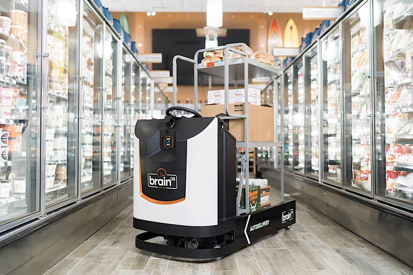 BrainCorp is also leveraging its automation packages to help deliver items within stores and facilities thanks to its recently announced AutoDelivery platform. As you can see in the video above, the system works like an autonomous harbor tug. Human associates load up a trailer with goods and products, then program the AutoDelivery’s route and let it do its thing — like an industrial-sized Big Trak. The AD, like the scrubbers before it, will automatically avoid obstacles, stop in its tracks should a person step into its path and stay there until the interloper moves.